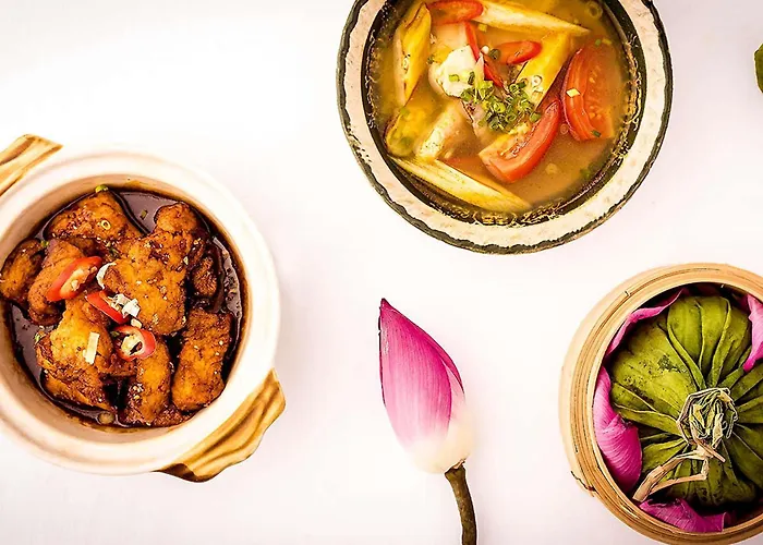 In 17 minutes' walk of The Marble Mountains, the 5-star Vinpearl Resort & Spa Da Nang offers an a la carte restaurant on site. Situated in Non Nuoc Beach district, the resort is set 1.4 km from Non Nuoc Pagoda.