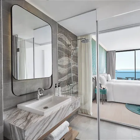 The accommodation has 494 rooms with views of the sea, a minibar fridge, a sofa set, and a writing table. They come with a bidet, a walk-in shower, and a separate toilet.